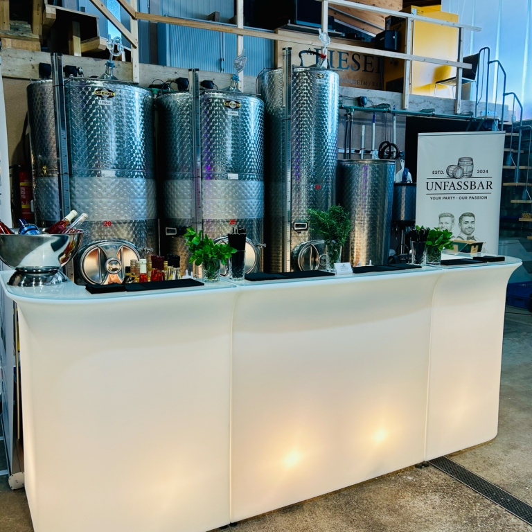 Unsere mobile Bartheke „Break Line“ ist ein echter Blickfang. Mit ihrer eleganten, modernen Formgebung und einer vollflächigen LED-Beleuchtung wird sie zum stilvollen Herzstück jeder Veranstaltung.
